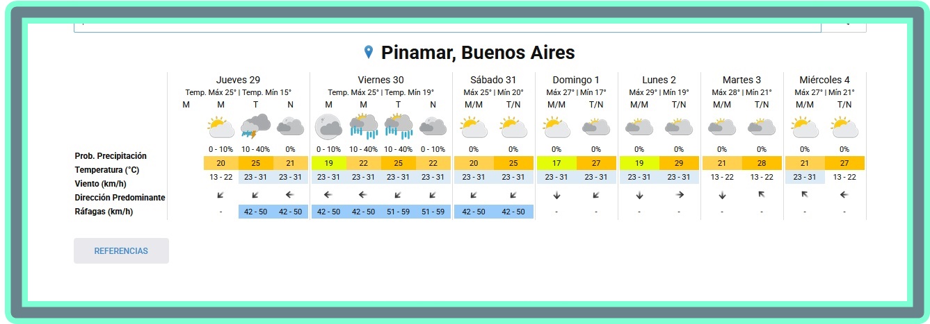 PRONÓSTICO DEL TIEMPO EN PINAMAR PARA ESTE JUEVES 29 Y PROYECCIÓN PARA LOS PRÓXIMOS 6 DÍASLigeramente nublado - Humedad: 91 % Presión: 1017.2 hPa Viento: Calma Visibilidad: 6 km Sol: 05:59 Puesta de Sol: 20:01 INTERNACIONALES