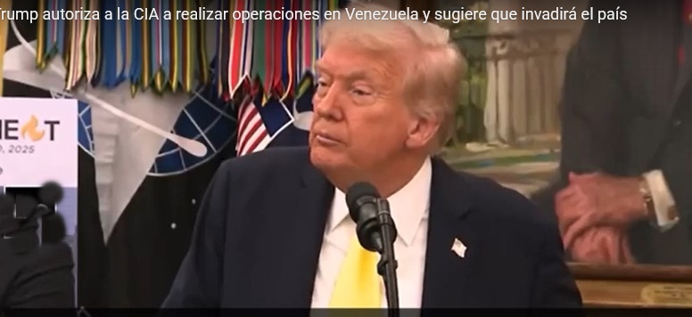 TRUMP AUTORIZA A LA CIA A REALIZAR OPERACIONES EN VENEZUELA Y SUGIERE QUE INVADIRÁ EL PAÍSDonald Trump confirmó en una declaración a la prensa en el Despacho Oval que ha autorizado a la Agencia Central de Inteligencia (CIA) a realizar operaciones encubiertas en Venezuela, incluyendo acciones letales dentro del territorio nacional y en aguas del Caribe. La revelación, que marca una escalada drástica en la campaña de Washington contra el gobierno de Nicolás Maduro, surge tras un informe exclusivo de The New York Times que detalla un "presidential finding" -un documento clasificado que otorga poderes extraordinarios a la agencia de inteligencia- firmado recientemente por Trump. ...LEER MÁS ... INTERNACIONALES