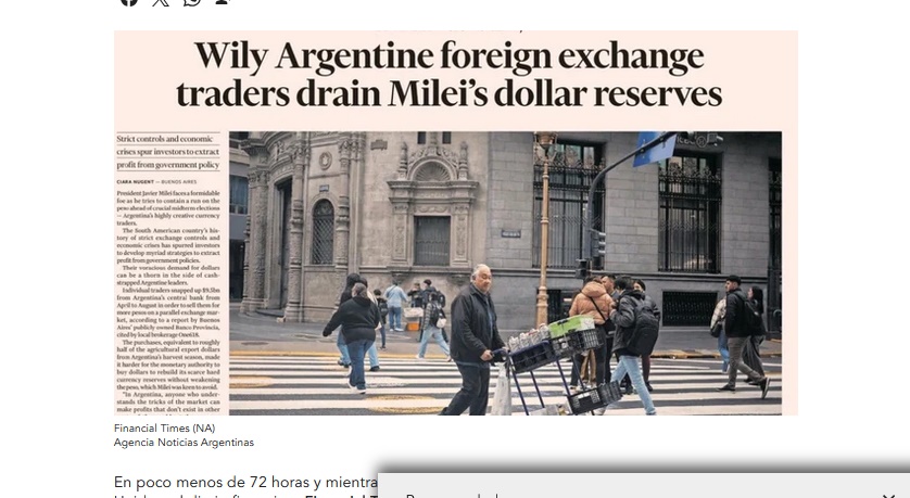 DURA ADVERTENCIA DEL FINANCIAL TIMES SOBRE ARGENTINA: "EL FRACASO DE MILEI HA INQUIETADO A LOS INVERSORES"En poco menos de 72 horas y mientras el gobierno encara una negociación crucial con Estados Unidos, el diario financiero Financial Times puso el foco en los problemas políticos y sociales que enfrenta la administración de Javier Milei a consecuencia del ajuste que implementó desde el inicio de su gestión. ...LEER MÁS ... FUENTE: PRENSA H.C.D. DE PINAMAR
