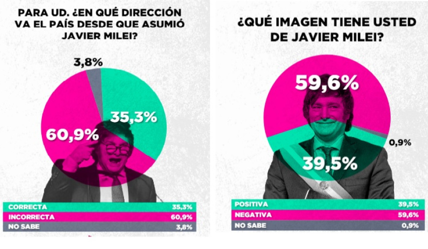 SE DESPLOMA LA IMAGEN DE MILEI Y FIGURA DEL PERONISMO SE DISPARA EN LAS ENCUESTASUna encuesta nacional de RDT Consultores, una firma que hasta antes de las elecciones de 2023 se mostraba optimista respecto a Javier Milei, encendió las alarmas en el Gobierno. El último estudio refleja que la desaprobación de la gestión presidencial alcanzó el 51,5%, mientras que la aprobación retrocedió al 34%. El desplome se da en un contexto de recesión económica que golpea directamente el bolsillo de los argentinos. ...LEER MÁS ... NACIONALES
